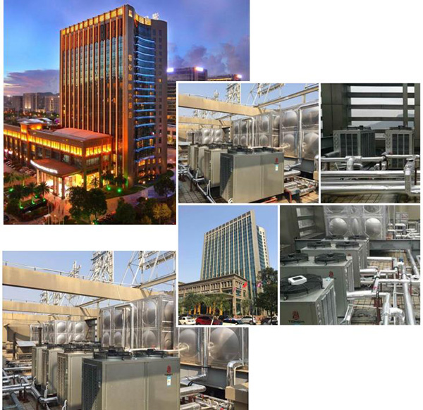 温州洲亿国际大酒店秉承“宾客至上,服务优先”的经营理念,致力于为顾客提供方便、高效、快捷、温馨的服务。在最基本的热水设施方面,更是保有高标准高要求。酒店负责人认为,在满足酒店用水恒温稳定、供应充足、出水量大、时刻有热水等特定要求的同时,还要安全环保,保障顾客的用水安全,而且要性价比高,节省运营成本。综合多方因素考量,酒店最终选择被誉为“空气能创造者”的同益空气能,采用其10台12P热泵机组和4个25吨水箱,在完全满足酒店需求的基础上做到高效节能,保证365天24小时全天候的恒温热水供应。